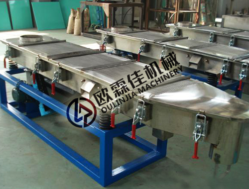 直线振动筛是欧霖佳机械主营产品之一,该筛分机是利用卧式振动电机激振作为振动源,使物料在筛网上被抛起,同时向前作直线运动,故称作直线振动筛,又称直线筛;物料从给料机均匀地进入筛分机的进料口,通过多层筛网产生数种规格的筛上物、筛下物、分别从各自的出口排出。具有耗能低、产量高、结构简单、易维修、全封闭结构,无粉尘溢散,自动排料,更适合于流水线作业。