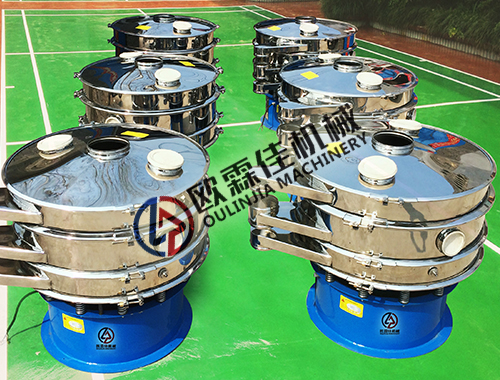 三次元旋振筛(简称“旋振筛”)是欧霖佳机械主营产品之一,是一种高精度筛分机,总的功能是把干物料分离成不同的粒径组或从液体中分离出固体。被筛选物料由筛分机上方进料口落入筛面,物料在离心电机产生的三次元振动下在筛面进行螺旋扩散运动,粒径较小物料透过筛孔自由落下,每种规格的物料均由可360度任意旋转排料口自动排出完成筛分工作(图片中排料口重叠是为运输方便,实际使用中每一排料口均可360任意旋转)。